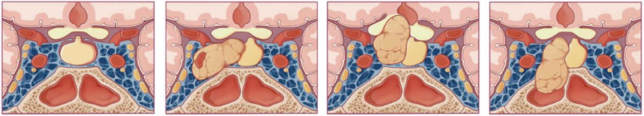 垂体神经内分泌肿瘤(PitNET),又称垂体腺瘤,约占所有颅内肿瘤的10%~20%,据报道其患病率为每10万人中70-100例。尽管垂体腺瘤被归类为良性肿瘤,但超过40%的病例在病程进展中会表现出肿瘤侵袭性(invasive),难以通过手术完全切除,进而导致残留肿瘤快速复发。20世纪提出的Knosp分级与Hardy-Wilson分级通过评估肿瘤侵犯的解剖区域(侧方或上下方)来判断垂体腺瘤的侵袭性,主要以影像学检查和手术中的观察确定。该方法虽操作简便,但难以关联垂体腺瘤侵袭包绕周围正常组织、类似恶性肿瘤的生物学行为,因此对临床诊疗的指导价值有限。