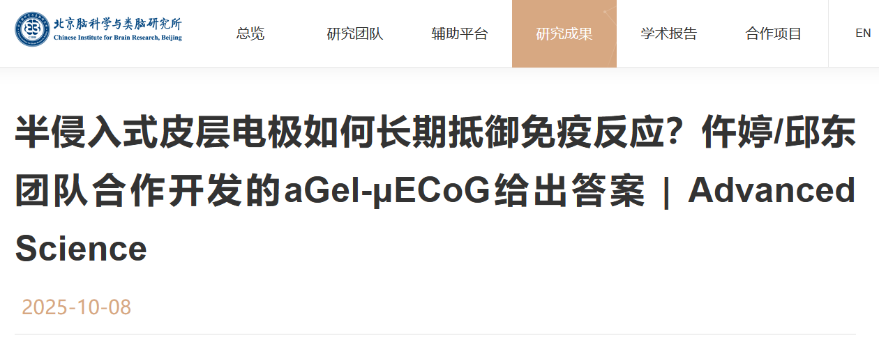 2025年10月8日,北京脑科学与类脑研究所仵婷课题组联合中国科学院化学研究所邱东课题组,在Advanced Science上在线发表了题为“Long-Term Stable Subdural Recordings Enabled by Fibrosis-Resistant Hydrogel-Integrated μECoG Arrays”的研究论文,为解决上述挑战提供了创新型方案。