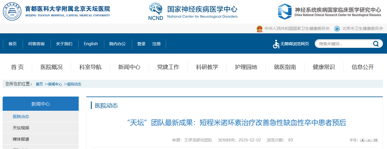 资讯来源:网站“首都医科大学附属北京天坛医院”,网址https://www.bjtth.cn/Html/News/Articles/214192.html